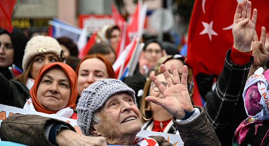 Partili kadınların sloganları üzerine Erdoğan, "İnanıyorum, AK kadınlar yorulmaz, liderini yalnız bırakmaz." karşılığını verdi.