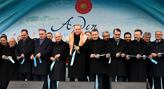 Ulaştırmada 114 kilometreden devralınan Aydın'ın bölünmüş yol mesafesini 381 kilometreye çıkardıklarını dile getiren Erdoğan, "İzmir-Aydın otoyolunu, Aydın çevre yolunu tamamlayarak trafiğe açtık. Yapımı devam eden Aydın-Denizli-Antalya otoyolunu, Aydın çevre yolu ayrımı ile Denizli çevre yolu ayrımındaki onarımı seneye tamamlıyoruz. Didim yat limanını tamamladık." bilgisini paylaştı.