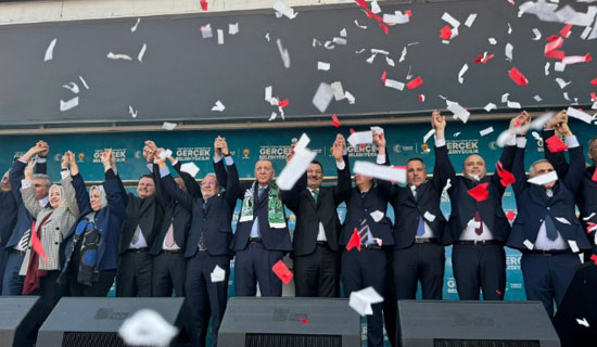 Muhalefet partileri yaptıkları kongrenin üzerindeki şaibeleri, aday belirleme sürecindeki kirli pazarlıklar ve vahim iddialar izledi. Öyle bir haldeler ki dünya yansa, ülke batsa, kıyamet kopsa, millet feveran etse umurlarında değil. Kendi çıkarlarından, kendi şahsi kariyerlerinden başka hiçbir şeyi gözleri görmüyor. Aslında bunlar tek parti devrinden beri hep böyleydiler. Bunun için milletimiz rahmetli Menderes'ten merhum Özal'a kendi hayallerini paylaşan herkese sahip çıkmıştır. Biz de 21 yıldır ülkenin kalkınması ve gelişmesi için verdiğimiz mücadele ile farkımızı gösterdik. Şimdi de ülkemizi Türkiye Yüzyılı belediyeciliği ile mahalli idarelerde de dünyanın en üst ligine çıkarmak istiyoruz. Milletimizden 31 Mart'ta sandıkta desteği muhalefetin yaptığı gibi siyasi rant paylaşımı değil işte bu vizyonu hayata geçirme iradesi ile talep ediyoruz. Bugün sizlerin karşısına da aynı hissiyatla çıktık.