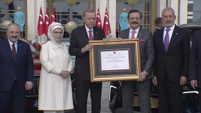Türkiye'nin yerli ve milli otomobili Togg'un ilk siparişini veren Cumhurbaşkanı Recep Tayyip Erdoğan ve Emine Erdoğan'a araç teslim edildi.