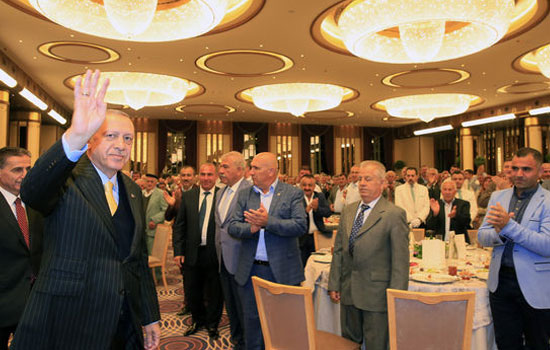 Cumhurbaşkanı Recep Tayyip Erdoğan, Cumhurbaşkanlığı Külliyesi Sergi Salonu'nda Ankara muhtarlarıyla sahur programında bir araya geldi.