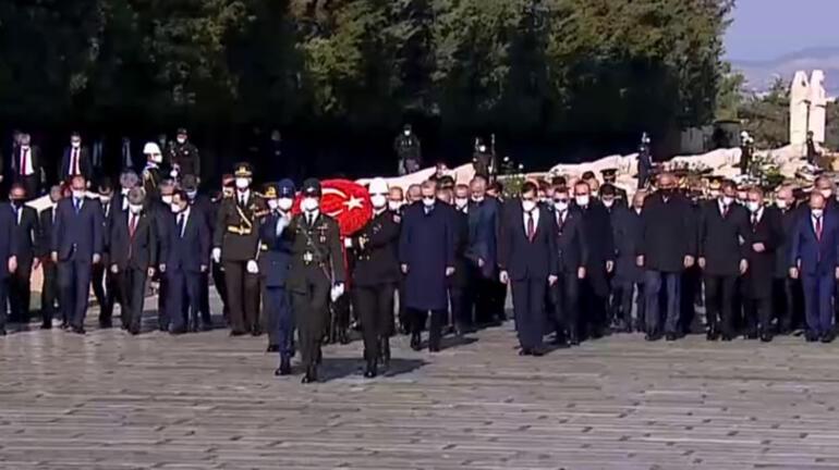 Cumhurbaşkanı Recep Tayyip Erdoğan'ın Aslanlı Yol'un başındaki yerini almasının ardından başlayan törende, Türkiye Büyük Millet Meclisi Başkanı Mustafa Şentop, Cumhurbaşkanı Yardımcısı Fuat Oktay, CHP Genel Başkanı Kemal Kılıçdaroğlu, MHP Genel Başkanı Devlet Bahçeli, İYİ Parti Genel Başkanı Meral Akşener, Cumhurbaşkanlığı Kabinesi üyeleri, yüksek yargı organlarının başkanları, Genelkurmay Başkanı Orgeneral Yaşar Güler ve kuvvet komutanları da Aslanlı Yol'dan geçerek, mozoleye çıktı.