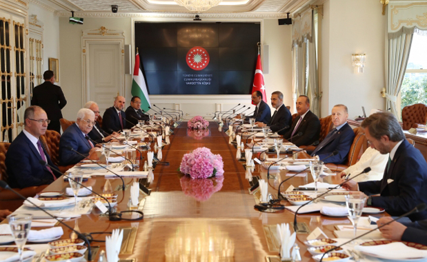 Cumhurbaşkanı Erdoğan ile Filistin Devlet Başkanı Abbas İstanbul'da Vahdettin Köşkü'nde bir araya geldi.