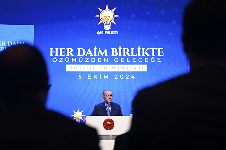 AK Parti olarak, üye sayısı itibarıyla Türkiye'nin en büyük ailesi olduklarını hatırlatan Erdoğan, "Biz çıkar birliği yapmış bir hareket değil, Türkiye'ye hizmet aşkıyla gönül birliği, kader birliği, yol ve dava arkadaşlığı yapmış bir siyasi partiyiz. AK Parti teşkilatlarını bir arada tutan harç, kardeşlik hukukudur. Biz birbirini ezerek yükselenlerden olmadık. Birbirinin elini tutarak, birbirine omuz vererek yükselenlerden olduk. Hep söylüyorum; makamlar, rütbeler, oturulan koltuklar değişebilir, molalar olabilir, kesintiler olabilir, dinlenmeye çekilenler olabilir ama uğruna ömrümüzü adadığımız AK Parti'nin temsilcisi olduğu kutlu dava inşallah ilelebet payidar olacaktır." diye konuştu.