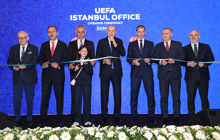 Cumhurbaşkanı Recep Tayyip Erdoğan, Avrupa Futbol Federasyonları Birliği (UEFA) İstanbul Temsilciliği açılış törenine katıldı.