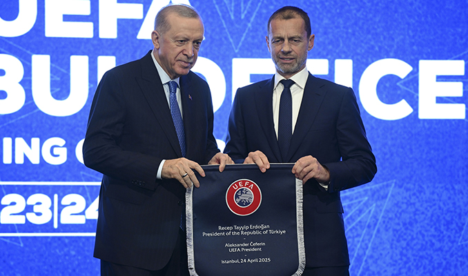 Türk takımlarının, UEFA'nın organizasyonlarında her sene boy gösterdiğini anımsatan Cumhurbaşkanı Erdoğan, "A Milli Futbol Takımımız, 2024 Avrupa Futbol Şampiyonası'nda çeyrek final oynarken, oynadığı futbolla futbolseverlerin gönüllerini fethetti. 2025 yılında A Milli Futbol Takımı, tarihinde ilk kez Uluslar Ligi A Ligi'nde yer alma hakkını elde etti. 2026 UEFA Avrupa Ligi ve 2027 UEFA Avrupa Konferans Ligi finallerine, inşallah, ev sahipliği yapacağız. 2032 Avrupa Futbol Şampiyonası'nı ise İtalya ile birlikte ülkemizde düzenleyeceğiz. Şunu bugün bir kez daha çok net söylemek isterim: Türkiye olarak, olimpiyatlar dahil, her türlü uluslararası spor etkinliğinin altından kalkacak kapasiteye ziyadesiyle sahibiz." ifadelerini kullandı.