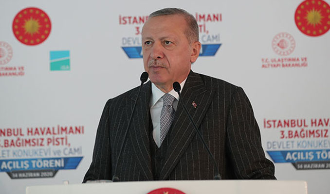 Erdoğan, İstanbul Havalimanının üçüncü pisti ve ikinci kulesiyle, Devlet Konukevi ve caminin hayırlı olmasını dileyerek, iftihar verici bir eserin yeni bölümlerinin Türkiye'ye kazandırılmasında emeği geçenleri tebrik etti.