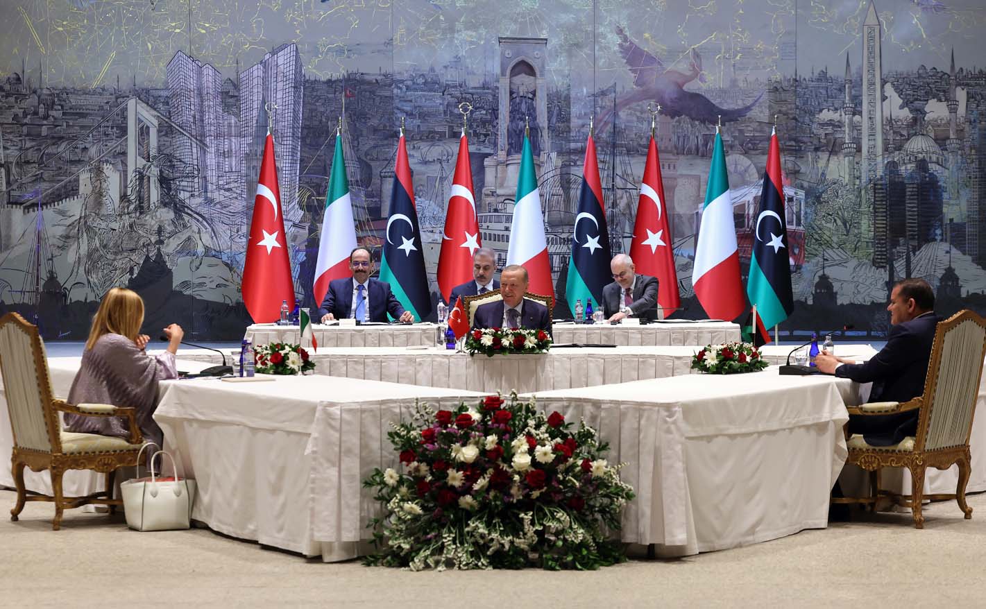 Cumhurbaşkanı Recep Tayyip Erdoğan, İtalya Başbakanı Giorgia Meloni ve Libya Başbakanı Abdulhamid Dibeybe'yi bugün saat 14.30’da Dolmabahçe Çalışma Ofisi'nde kabul etti. Liderler, Türkiye-İtalya-Libya üçlü zirvesi kapsamında bir araya geldi.