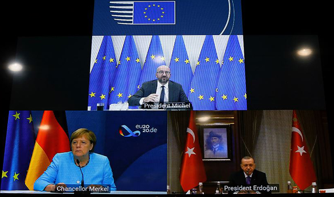 Cumhurbaşkanı Recep Tayyip Erdoğan, Avrupa Birliği (AB) Konseyi Başkanı Charles Michel ve Almanya Başbakanı Angela Merkel ile üçlü formatta bir video konferans görüşmesi gerçekleştirdi.