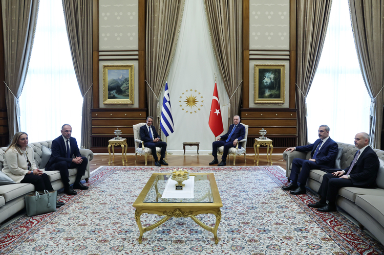 Cumhurbaşkanı Recep Tayyip Erdoğan, Yunanistan Başbakanı Kiryakos Miçotakis'i kabul etti.