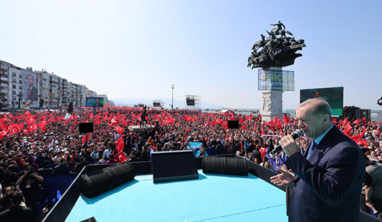 İzmir'in yaralarını sarmaya az kaldığını belirten Cumhurbaşkanı Erdoğan, ''İzmir bir asır önce düşmandan kurtuldu ama epeydir eser ve hizmet fukaralarından yakasını maalesef kurtaramadı. 31 Mart akşamı İzmir bir başka güzel olacak.'' dedi.