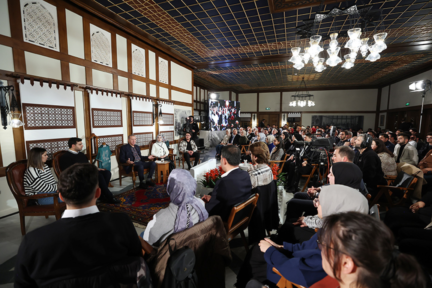 Bunlarla bir araya geldiğinde başta belli bir heyecan yaşanabileceğini, ısınma turlarından sonra işin kolaylaştığını anlatan Erdoğan, daha sonraki görüşmelerde heyecan safhasının kalmadığını belirtti. Artık siyasette ustalık seviyesini yakaladıklarını dile getiren Erdoğan, "Hamdolsun bu heyecan safhalarını aştık. Heyecan falan artık çok gerilerde kaldı, o da hanımla tanışmamız." dedi.