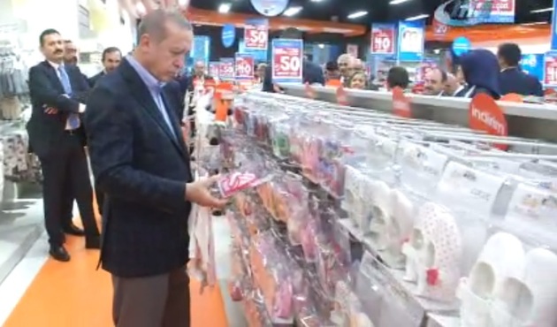 Torununa bebek kıyafeti ve ayakkabı alan Erdoğan, kasaya geldiğinde kendisinden para almak istemeyen görevliye itiraz ederek ödemesini gerçekleştirdi.