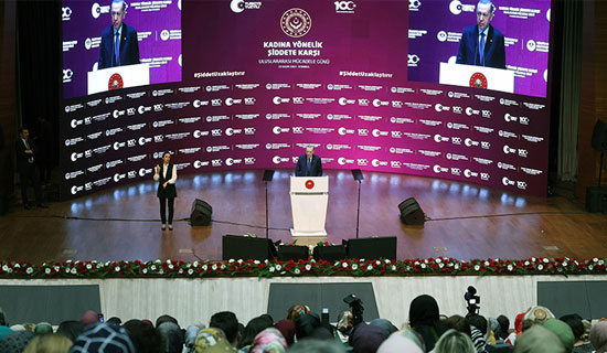 Amaçlarının erkeği ve kadınıyla milletin her bir ferdinin kendi hayatında ve toplumda kadına yönelik şiddet konusunda bilinç sahibi olması olduğunu kaydeden Erdoğan, Türkiye'nin bu hususta eskisiyle mukayese edilemeyecek derecede ileri bir seviyeye ulaştığını vurguladı.