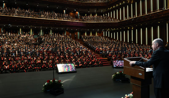 Yasamasıyla, yürütmesiyle, yargısıyla ülkemizin güvenliğini, esenliğini, huzurunu güçlendirmek için hep birlikte çalışmayı sürdüreceğiz. Büyük ve güçlü Türkiye'nin inşası yolunda verdiğimiz mücadeledeki onurlu duruşumuz evlatlarımıza miras bırakacağımız birer iftihar beratı hükmündedir. Böylesine kutlu bir vazifenin manevi hazzını başka hiçbir dünyevi karşılıkla mukayese etmek mümkün değildir. Hakimlerimiz ve savcılarımız milletimizin omuzlarına yüklediği sorumluluğun bilinciyle vazifelerini yürüttüğü sürece Allah'ın izniyle bu ülkenin hedeflerine ulaşmasına kimse mani olamaz.