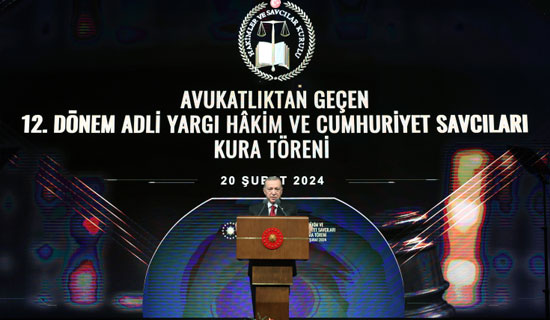Cumhurbaşkanı Recep Tayyip Erdoğan, Beştepe'deki Adli Yargı Hakim ve Cumhuriyet Savcıları ile İdari Yargı Hakimleri Kura Töreni'nde konuştu. Yüksek yargıdaki yetki tartışmaları konusundan adliyelerin sorunlarına kadar yargıdaki birçok sorun ile ilgili sonuşan Erdoğan, Meclis'e sunulan 8. Yargı Paketi hakkında da bilgiler verdi. Erdoğan, Adalet Bakanı Yılmaz Tunç ile birlikte kurada görev yerleri belirlenen hakim ve savcıların isimlerini de okudu.