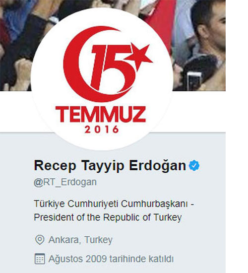 Cumhurbaşkanı Erdoğan, kişisel resmi sosyal medya hesapları Twitter ve Facebook profil fotoğraflarını "15 Temmuz"un resmi logosu ile değiştirdi.