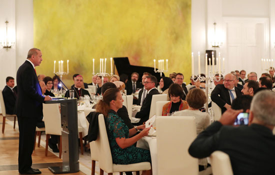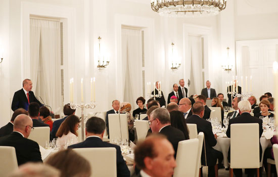 Türkiye Cumhurbaşkanı Recep Tayyip Erdoğan, Almanya Cumhurbaşkanı Frank-Walter Steinmeier'in, onuruna verdiği yemekte yaptığı konuşmada, ev sahibi mevkidaşının Türkiye'deki bazı tutuklular hakkında dile getirdiği endişelere cevap verdi. Erdoğan, bu konuda yanlış bilgilendirmenin söz konusu olduğunu söyledi.