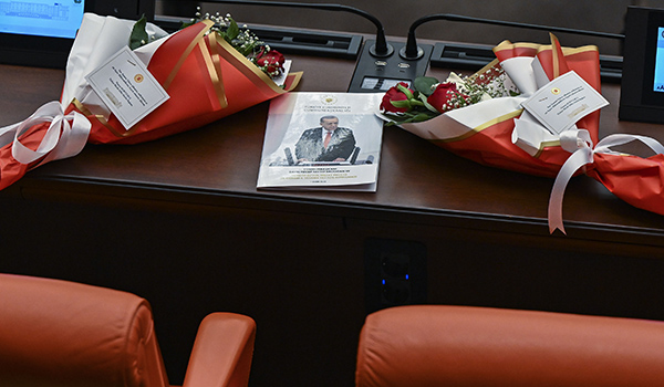 Açılış öncesi Genel Kurul salonuna çiçekler bırakıldı.