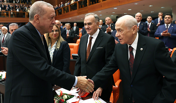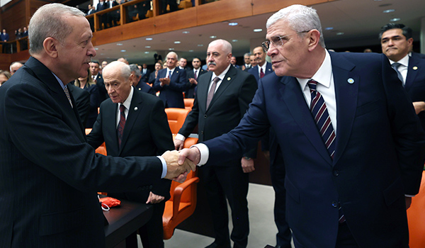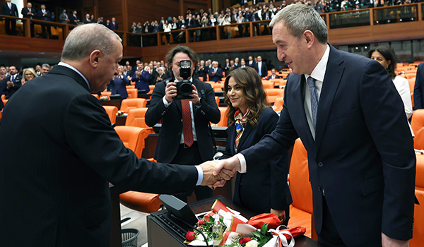 Cumhurbaşkanı, geçen yılki açılış konuşmasında iç cepheye vurgu yaptığını anımsatarak, son bir yılda “terörsüz Türkiye” hedefi doğrultusunda tarihi nitelikte adımlar atıldığını kaydetti. Bu süreçte Milliyetçi Hareket Partisi lideri Devlet Bahçeli’ye siyasi tecrübesi ve katkıları için teşekkür eden Erdoğan, DEM Parti heyetine de terörün tasfiyesine yönelik yapıcı katkılarından dolayı şükranlarını iletti.