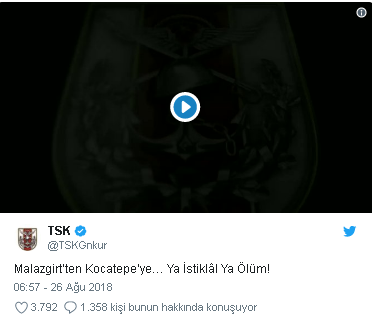 Türk Silahlı Kuvvetleri'nce de (TSK), 26 Ağustos Malazgirt Zaferi ve 30 Ağustos Zafer Bayramı'nın yıl dönümü dolayısıyla klip yayınlandı.