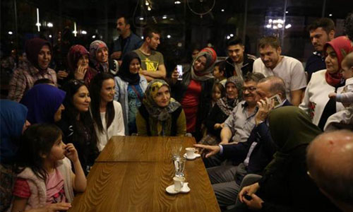 Daha sonra pastaneden ayrılan Erdoğan, dışarıda kendisini bekleyen vatandaşlara otobüsten seslendi. Gösterdikleri ilgiden dolayı tüm vatandaşlara teşekkür eden Cumhurbaşkanı Erdoğan, şöyle konuştu: