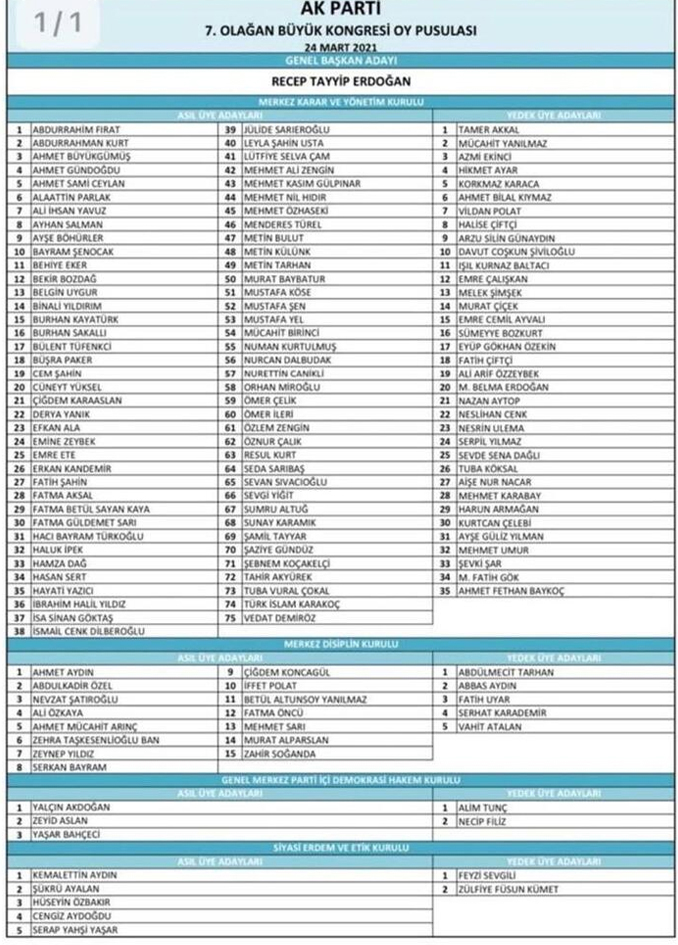 AK Parti’nin yeni Merkez Karar ve Yönetim Kurulu kadrosu belli oldu. İşte o liste;