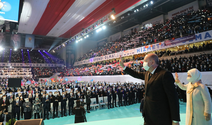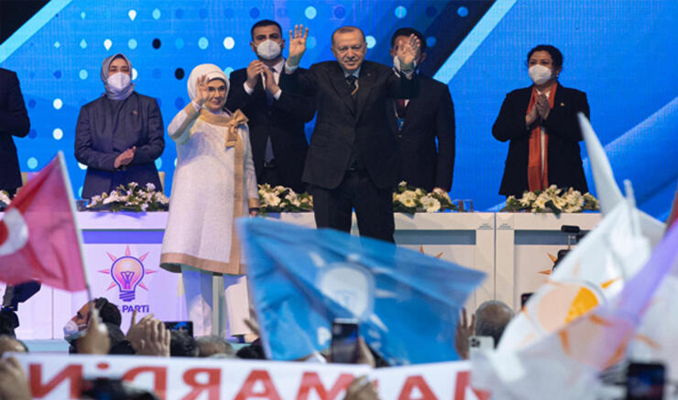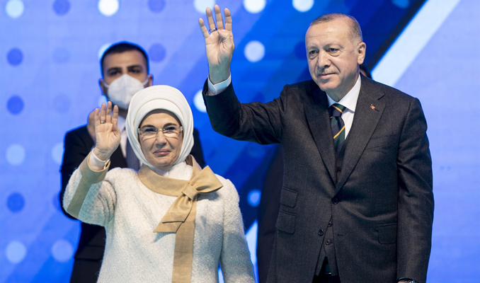 Cumhurbaşkanı ve AK Parti Genel Başkanı Recep Tayyip Erdoğan, eşi Emine Erdoğan ile Ankara Spor Salonu'na geldi. Cumhurbaşkanı Erdoğan, konuşmasının başında illerin adlarını tek tek söyleyerek partilileri selamladı.