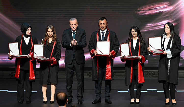 Cumhurbaşkanı Erdoğan, konuşmasının ardından, 25. Dönem Adli Yargı Hakim Adayı birincisi Gülümser Kurt, 25. Dönem Adli Yargı Cumhuriyet Savcısı Adayı birincisi Hümeyra Çalı, 11. Dönem Adli Yargı Hakim birincisi Ümit Kozan, 11. Dönem Adli Yargı Cumhuriyet Savcısı birincisi Seda Gedik, 15. Dönem İdari Yargı Hakim birincisi Nagihan Yüksel'e plaket verdi.