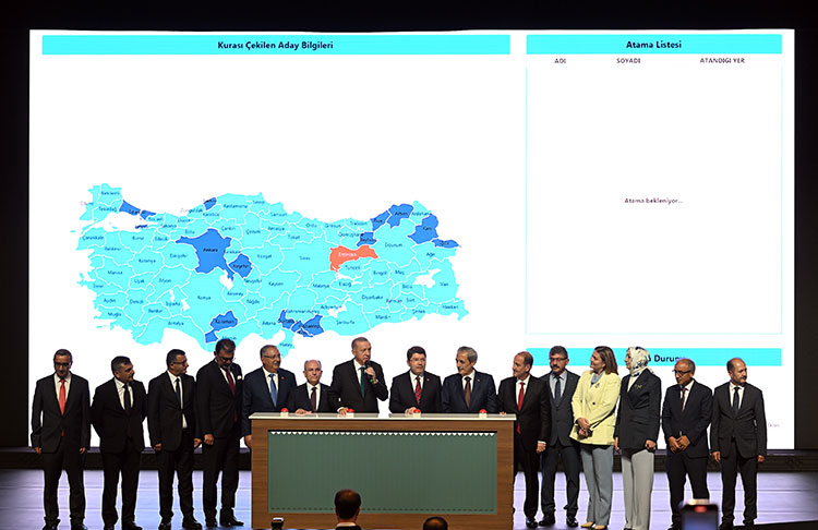 Cumhurbaşkanı Erdoğan, yerleri belli olan bazı isimleri de ekrandan okuyarak, hayırlı olsun dileklerini iletti.