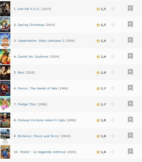 Gelmiş geçmiş en kötü filmler sıralamasında 5. sırada olan Reis, puan olarak da çok düşük kalırken, IMDB filmin açıklamasında Recep Tayyip Erdoğan'dan 'Diktatör' diyerek bahsetti.