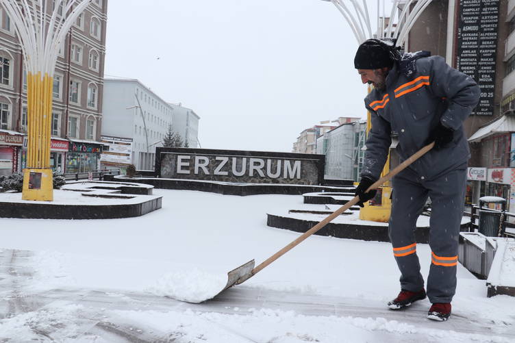 Erzurum'da dün akşam aralıkla başlayan karla karışık yağmur, gece kara dönüştü.Sabah saatlerinde etkisini artıran kar yağışı kenti beyaza bürüdü.