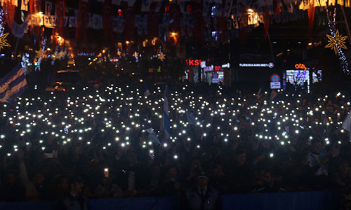Yoğun katılımın olduğu ve havai fişek gösterisinin yapıldığı programda, cep telefonlarının ışıklarını yakan taraftar grubu güzel görüntüler oluşturdu.