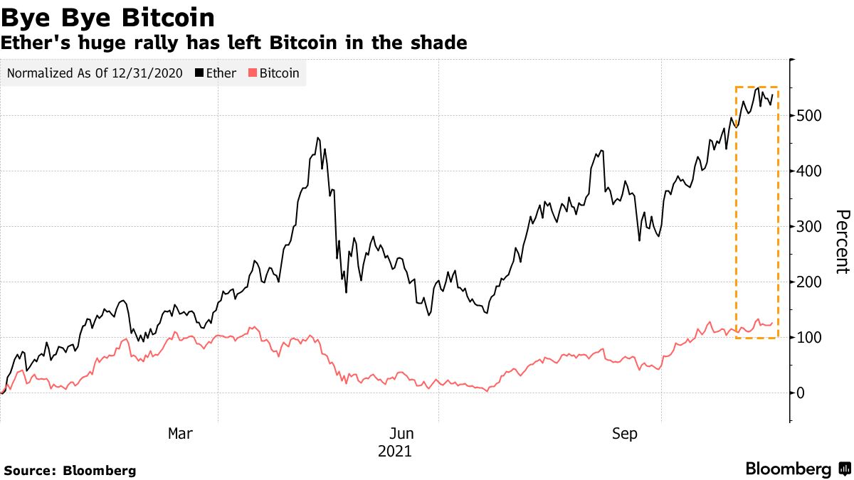 Yıla 730 dolar civarında başlayan Ether, 10 Kasım’da 4.859 dolara yükselerek rekor kırdı ve değerini yıl başından beri altı kattan fazla artırdı. En büyük altcoin, yıl başından beri yüzde 127 değer kazanan Bitcoin’in (BTC) performansını da önemli ölçüde geride bırakmış oldu.