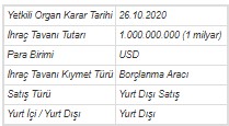 Kamuyu Aydınlatma Platformu'nda yapılan açıklamaya göre, azami 10 yıl vadeli, sabit ve/veya değişken faizli tahvillerin bir veya birkaç seferde ihracı planlanıyor.