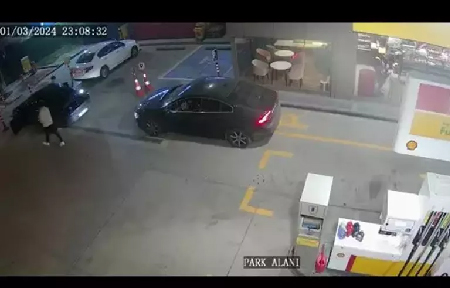 - T.C. ve arkadaşının kullandığı lüks araçlar saat 23.01'de akaryakıt istasyonunda mola verdi.