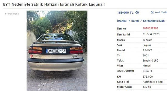 EYT için askerlik veya doğum borçlanmalarını ödeyecekler arasında, otomobil başta olmak üzere arsa, iş yeri, motosiklet, cep telefonu ve ev aletlerini satılığa çıkaranlar bulunuyor. 'EYT nedeniyle' ibareli satış ilanlarında 'acil' olduğu da vurgulanıyor. Konut, dükkan ve arsasının yanı sıra cep telefonu veya koşu bandını satılığa çıkaranlar oluyor. Emlak ve ürün satışı yapılabilen sitelerde yüzlerce 'EYT nedeniyle satılık' ilanı yer alıyor. İlanların çoğunda da 'acil' ibaresi bulunuyor.
