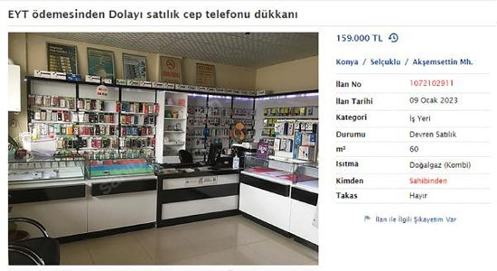 Türkiye'nin birçok ilinden ilan veren EYT'lilerden biri, Aydın Yenipazar'da 456 metrekarelik arsasını 320 bin TL'ye satışa çıkardı. İlanda 'EYT'den dolayı 450 metrekarelik arsamı satıyorum' açıklaması bulunuyor. Konya Selçuklu'da bir kişi ise 'EYT ödemesinden dolayı satılık cep telefonu dükkanı' şeklinde verdiği ilan ile 60 metrekarelik dükkanını 159 bin TL'ye satışa çıkardı. Afyonkarahisar'dan bir EYT'li, 1999 model aracını EYT nedeniyle satılığa çıkardığını belirttiği ilanda, 188 bin TL talep ediyor. İstanbul'dan bir EYT'li de 2011 model aracı için 189 bin TL istiyor. Bir satış sitesinde EYT nedenli 11 emlak, 56 araç, 3 ev aletleri ve 1 tarım makinası ilanı bulunuyor.