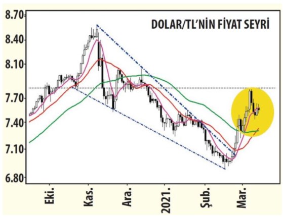 Bir süre kur bu aralıkta sıkışma yaşayabilir. Faizlerin aynı kalması ya da parasal sıkılaştırma yönünde piyasanın beklediği mesajın gelmemesi ilk tepki olarak kur üzerinde etkisini gösterecektir. İlk direnç 7.80 seviyesinde. Enflasyonun düşürülmesi birincil hedef olduğu için kurda yükselişin sınırlı olması beklenmeli.