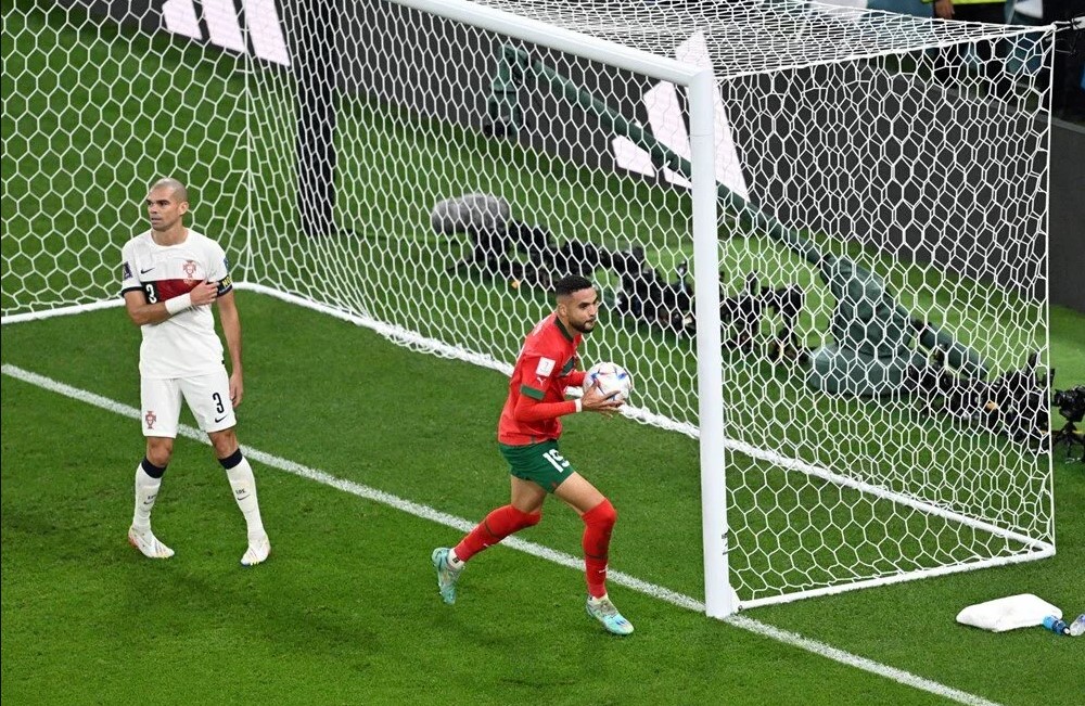Thumama Stadı’nda oynanan tarihi maçta 42. dakikada Youssef En-Nesyri sahneye çıktı. Yahia Attiat-Allal’ın sol kanattan ceza alanına gönderdiği ortasında arka direkte Youssef En-Nesyri kalesinden çıkıp zamanlama hatası yapan Diogo Costa’dan önce kafa vuruşunu yaptı ve topu ağlara gönderdi.