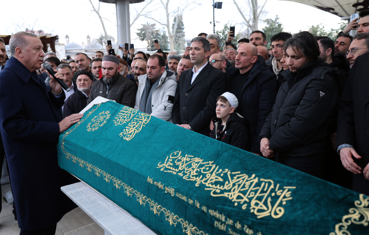 Cenaze törenine giden Cumhurbaşkanı Erdoğan, merhumun yakınlarına baş sağlığı diledi.