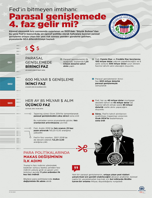 Ekonomistler, ekonominin "sıfıra yakın" faizlerle desteklenmesinin ardından yeni bir parasal genişleme sürecinin başlayıp başlamayacağına dair görüşlerin dile getirilmeye başlandığını belirtirken, Fed'in son hamlesinin, artan oynaklık ve algı bozulmasının etkilerinin tahminlerden daha fazla olabileceğini düşündürdüğünü söyledi.