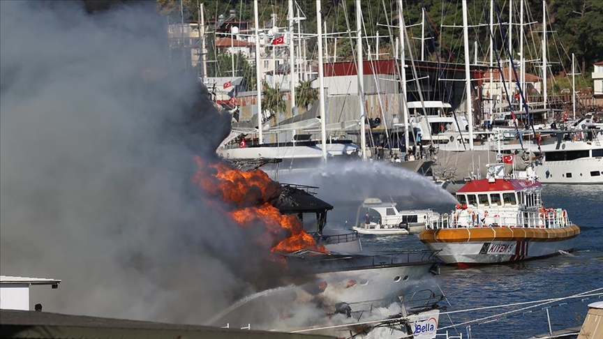 Fethiye'nin Karagözler Mahallesi'nde kıyıda bağlı bulunan bir motor yatta henüz belirlenemeyen nedenle yangın çıktı.