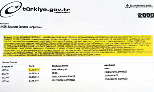 Milliyet, FETÖ’nün sahte sağlık raporuyla okuldan uzaklaştırdığı Kara Harp Okulu öğrencisi H.K.’nın 2014’te Başbakanlık İletişim Merkezi’ne (BİMER) gönderdiği ve adeta 15 Temmuz darbe girişimini ihbar eden başvuru dilekçelerine ulaştı.