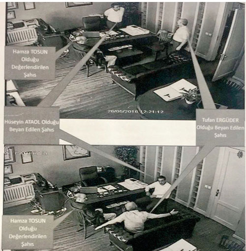 Ataol’un bürosunda gerçekleşen ve güvenlik kamerası tarafından kaydedilen görüşmede, Tosun’un “Bu adamların Türkiye’deki ilk yaptırımları bankalarla başlayacak. Halk Bankası mesela” dediği görüldü. Gazete Habertürk'ten Serdar Kulaksız'ın haberine göre Savcılık; Tosun, Ergüder ve Ataol’u da TCK’nın “suç için anlaşma” başlıklı 316’ncı maddesi kapsamında soruşturmaya şüpheli olarak dahil etti.