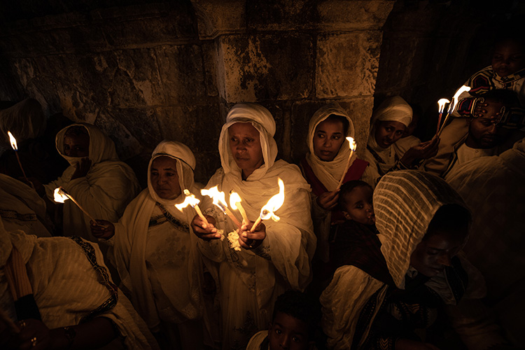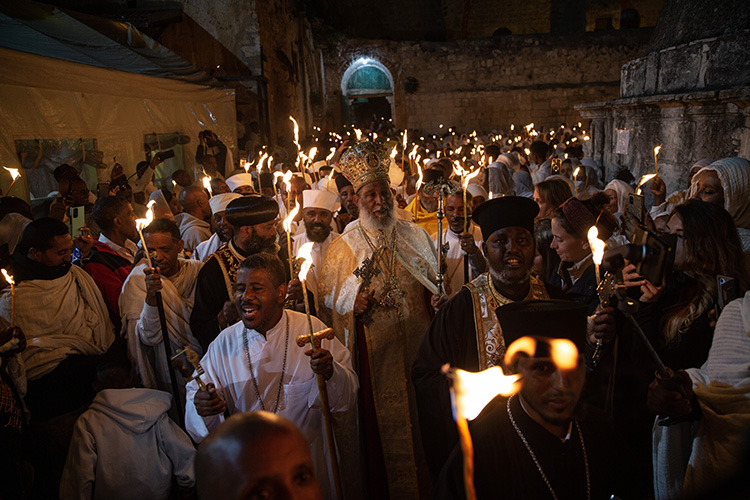 Batı Şeria'nın Beytüllahim ve Ramallah şehirlerinde Ortodoks Hristiyanlar, Hazreti İsa'nın çarmıha gerildikten sonra yeniden dirileceğine inanılan "Kutsal Cumartesi" dolayısıyla ayinler ve kutlamalar yaptı.