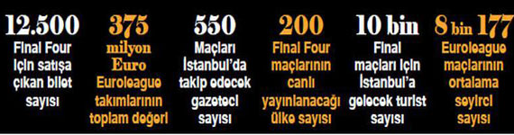 Türk Hava Yolları’nın (THY) isim sponsoru olduğu Euroleague, 2017 Final Four (dörtlü final) maçlarıyla İstanbul’un tanıtımına önemli bir katkı yapacak. 10 bin turistin final maçları için Türkiye’ye gelmesi beklenirken, maçlar 200 ülkede 2 milyar kişiye ulaşacak. Euroleague’in THY’ye yıllık 140 milyon Euro’luk reklam geri dönüşü sağladığını anlatan THY Yönetim Kurulu ve İcra Komitesi Başkanı İlker Aycı, “Bu katkı İstanbul için 2-3 katı olacak” dedi. Final Four’un İstanbul’da düzenlenmesi için çok büyük çaba sarf ettiklerini dile getiren Aycı, “Eylül-aralık döneminde Türkiye’ye 500 gazeteci getirdik. Algıyı kırdık. Finalin İstanbul’da düzenlenmesine karşı çıkanları ikna ettik” dedi. Bu süreçte THY’nin katkılarının büyük olduğunu anlatan Euroleague CEO’su Jordi Bertomeu ise “İstanbul’da ve Türkiye’de her şeyin yolunda olduğunu gösteren çalışmalar yaptık. THY’den ne istediysek yerine getirdiler. Bugün 9 tane Türk sponsorumuz var. Böylesine dev bir ekonomide İstanbul’un ve THY’nin yeri başka” dedi.