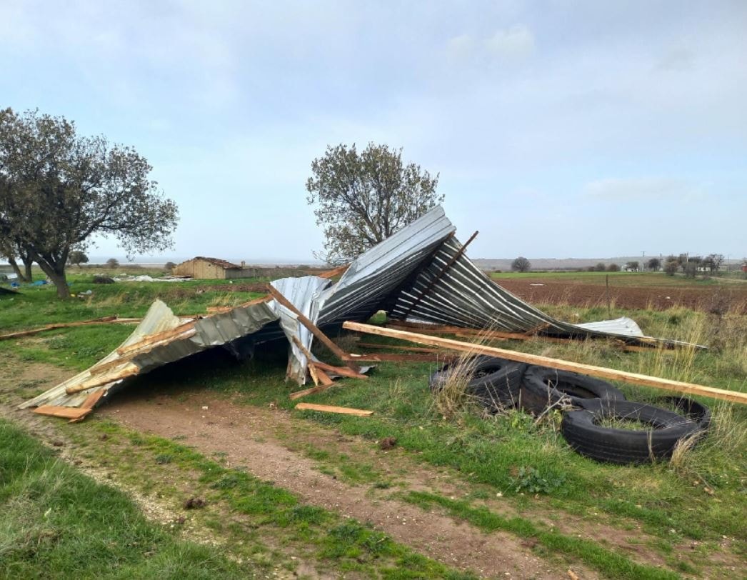 Çanakkale'de fırtına, hayatı olumsuz etkilemeye devam ediyor. Ezine ilçesine bağlı Üvecik köyünde, Mustafa Köroğlu'na ait 130 küçükbaş hayvanın bulunduğu ağılın çatısı uçtu. İlçe Tarım Müdürlüğü ekiplerince bölgede hasar tespit çalışması başlattı. Öte yandan Ayvacık ilçesine bağlı Cemaller köyünde etkili olan fırtına nedeniyle 1 dam ve 1 ağıl zarar gördü. Bölgede hasar tespit çalışması başlatıldı.