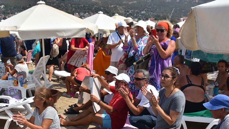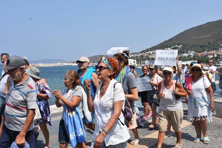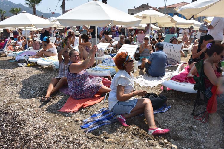 Havlu hareketi başlatarak, Yeni Foça Sahili'nde bir araya gelen grup, ellerinde 'Kıyılar halkındır', 'Sahiller bizim işgaliyeye son', 'Cennet sahiller birilerine para basıyor, halk uzaktan bakıyor', 'Bu ne beach im iş' yazılı dövizler taşıdı.