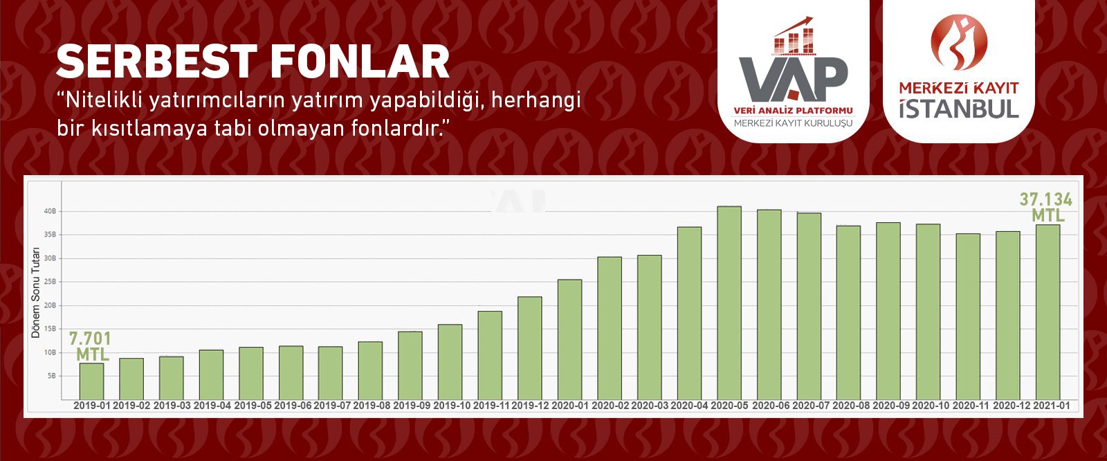 Merkezi Kayıt Kuruluşu'ndan (MKK) yapılan açıklamaya göre, serbest fonların piyasa değeri son iki yılda 5’e katlanarak 37 milyar TL’yi aşarken, serbest fon sayısı %100 artışla 248’e çıktı.